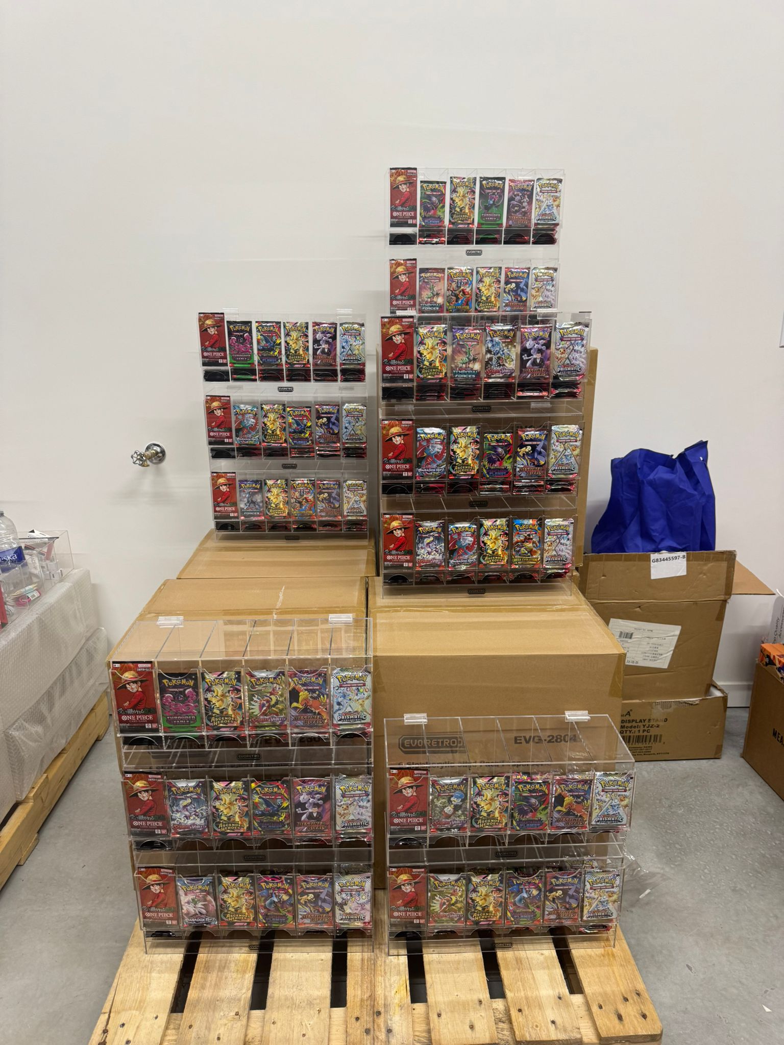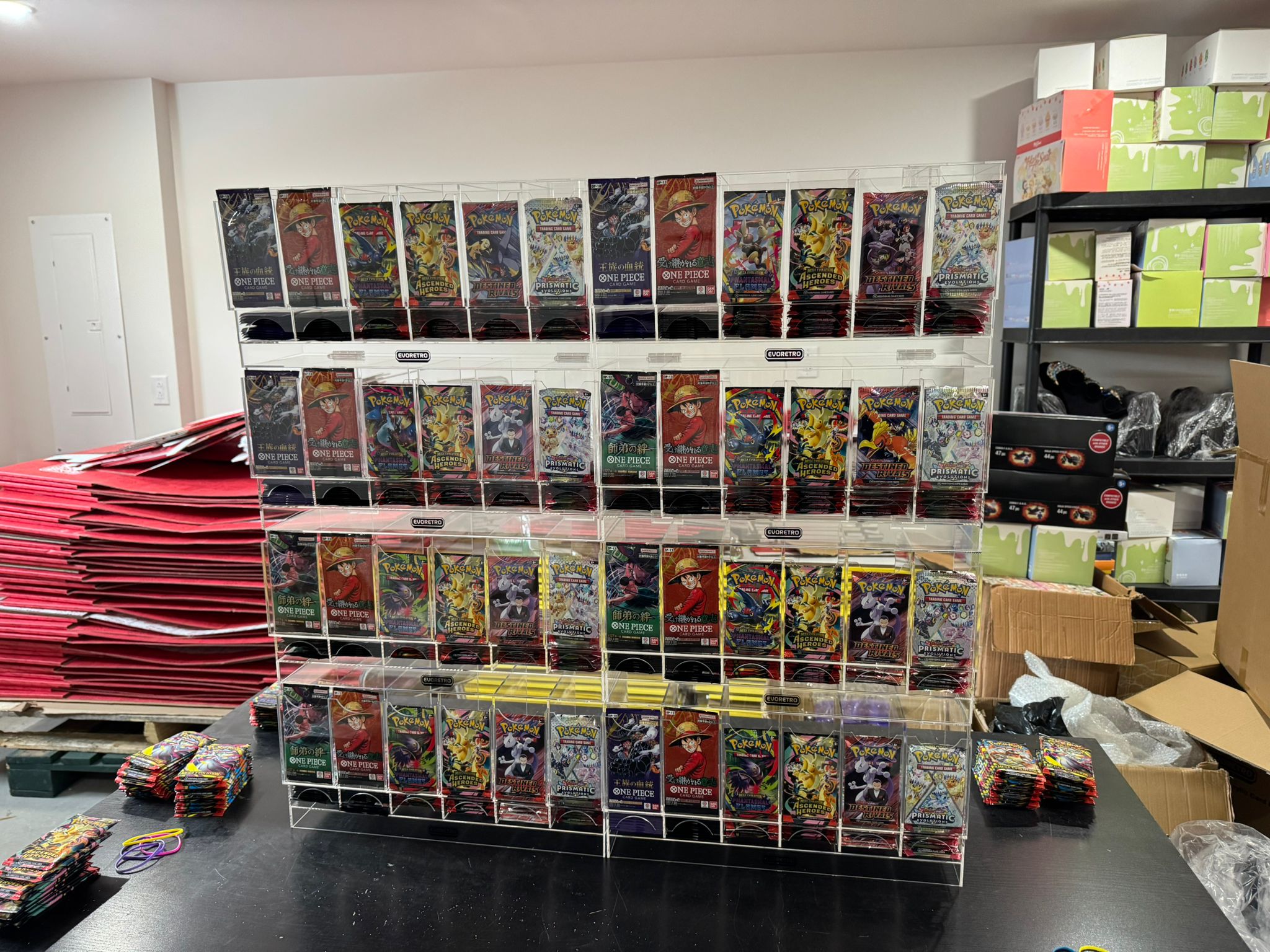Nous offrons également des présentoirs transparents qui permettent d’attirer l’œil des clients sur nos boosters Pokémon, l’un des produits les plus en demande à travers le monde.