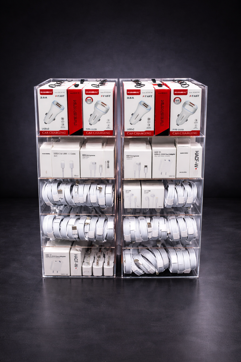 Nos présentoirs en plexiglas pour accessoires cellulaires ont été conçus afin de faciliter la recherche du modèle compatible avec l’appareil du client.